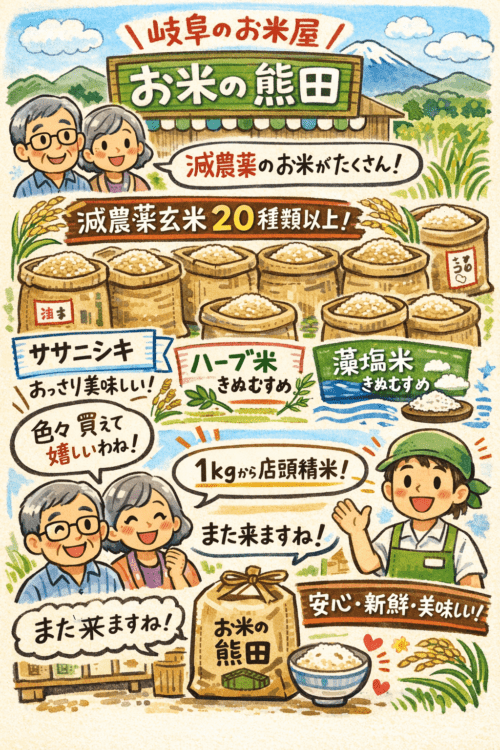 2026年3月31日 / 最終更新日時 : 2026年3月31日 お米の熊田 お客さんの声 岐阜市で減農薬のお米を買うなら 玄米も豊富に揃う専門店|お米の熊田 岐阜市で減農薬米を買うなら 玄米も豊富に揃う専門店|お米の熊田 岐阜のお米屋。お米の熊田です。 「減農薬のお米を安心して購入できるお店はないかな?」 そんな想いでネット検索をされていた年配のご夫婦が、岐阜市にある当店へご […]