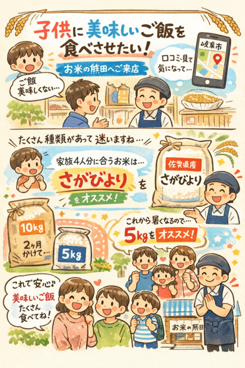 2026年3月23日 / 最終更新日時 : 2026年3月23日 お米の熊田 お客さんの声 岐阜の美味しいお米屋 子供に美味しいご飯を食べさせたい 岐阜市のお米屋「お米の熊田」です。 先日、男性のお客様がご来店くださいました。 ご家族はご夫婦とお子さん二人の4人家族です。 普段はスーパーでお米を購入したり、実家からお米をもらったりしているそうですが、最近お子さんのご […]